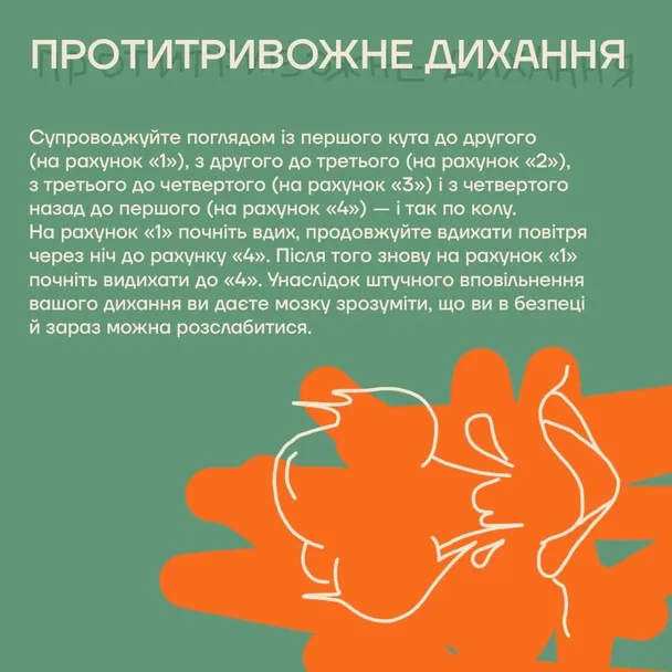 - Ще один метод: робіть вдих на два такти, а видих – на чотири чи шість. Тобто затримуйте дихання. Дітям можна давати скоромовки, щоби вони говорили їх на видиху.